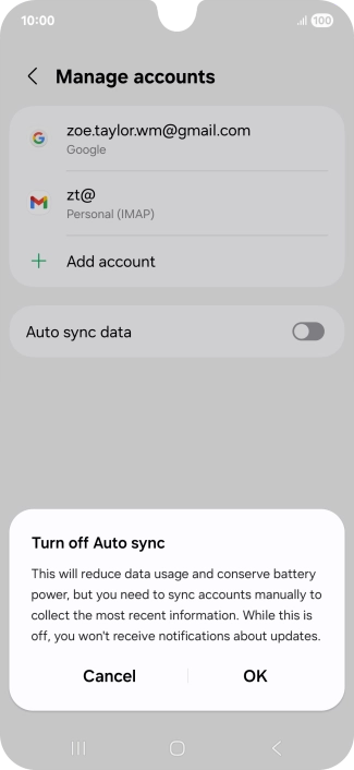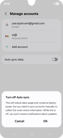 Press the indicator next to "Auto sync data" to turn the function on or off.