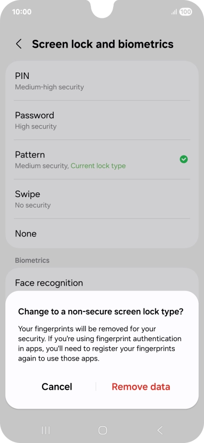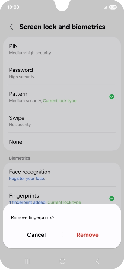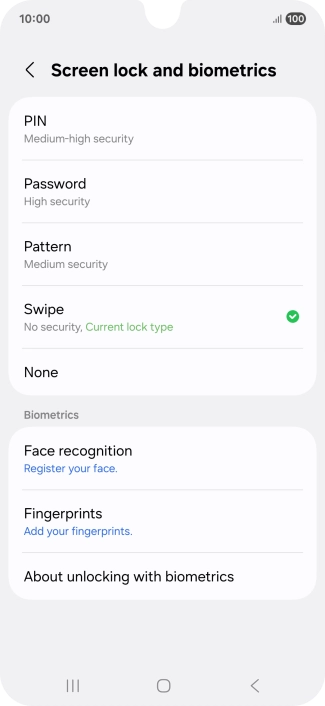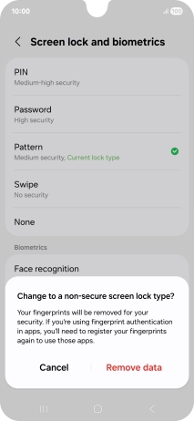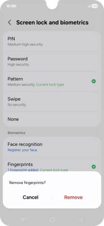 Press Screen lock and biometrics and key in the additional phone lock code you created earlier.