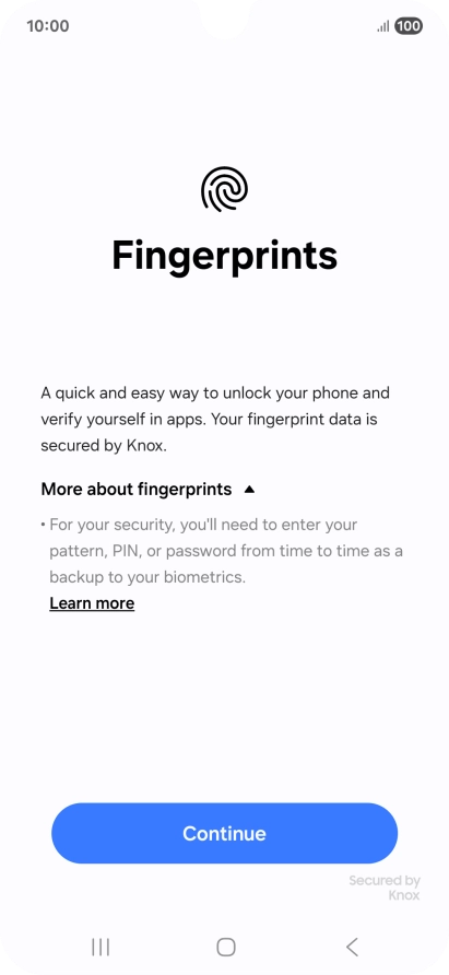 Follow the instructions on the screen to create the phone lock code using your fingerprint.