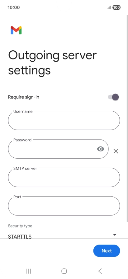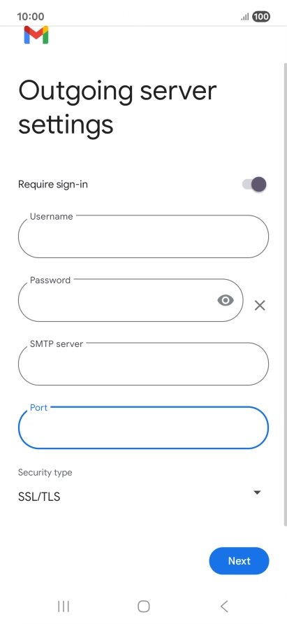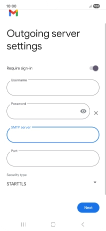 Press the field below "SMTP server" and key in the name of your email provider's outgoing server.