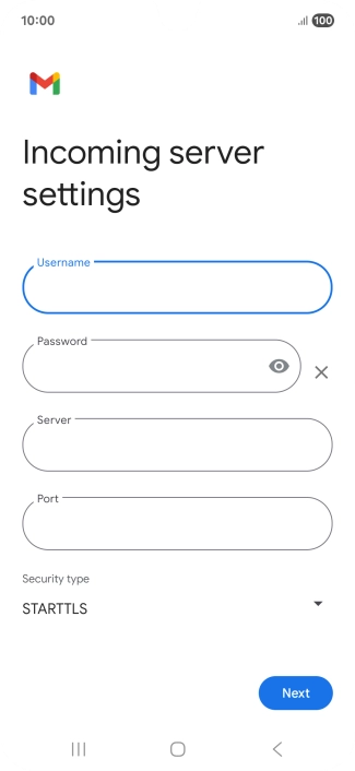 Press the field below "Server" and key in the name of your email provider's incoming server.