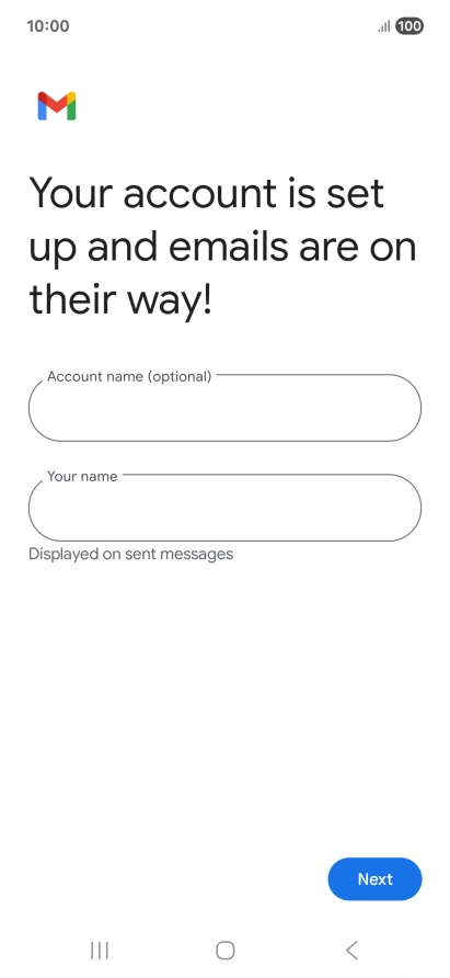 If this screen is displayed, you email account has been recognised and set up automatically. Follow the instructions on the screen to key in more information and finish setting up your phone.
