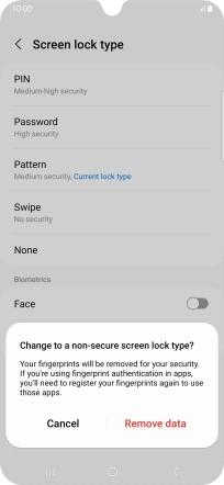 Press Screen lock type and key in the additional phone lock code you created earlier.