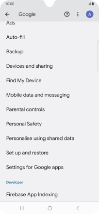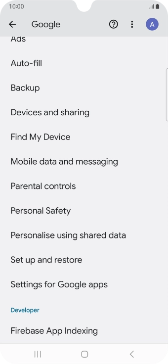 Select settings for Find My Device