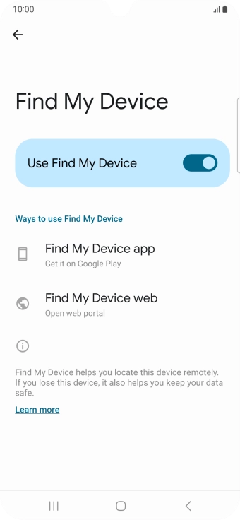 Press the indicator next to "Use Find My Device" to turn on the function.