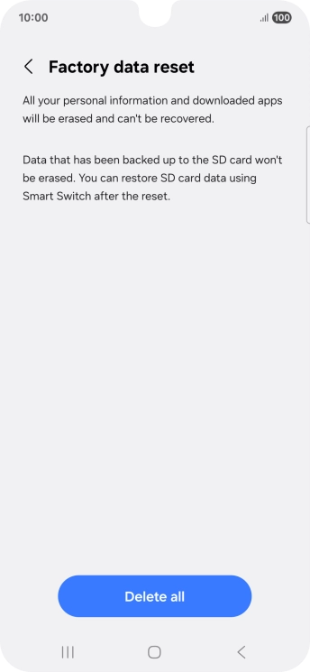 Press Delete all. Wait a moment while the factory default settings are restored. Follow the instructions on the screen to set up your phone and prepare it for use.