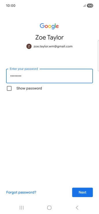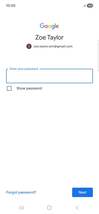 Press the field below "Enter your password" and key in the password for your Google account.