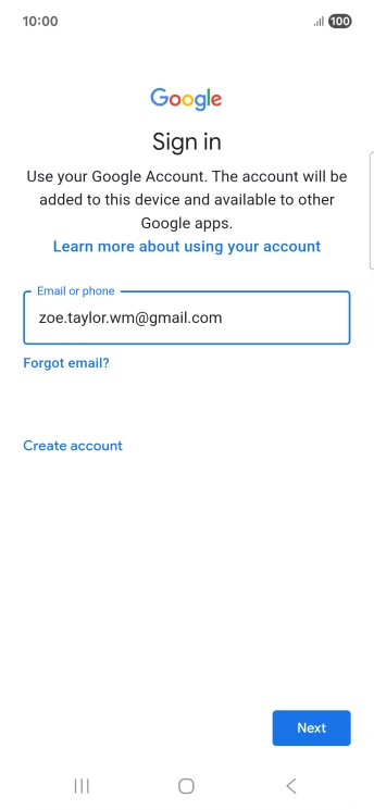 If you don't have a Google account, press Create account and follow the instructions on the screen to create an account.