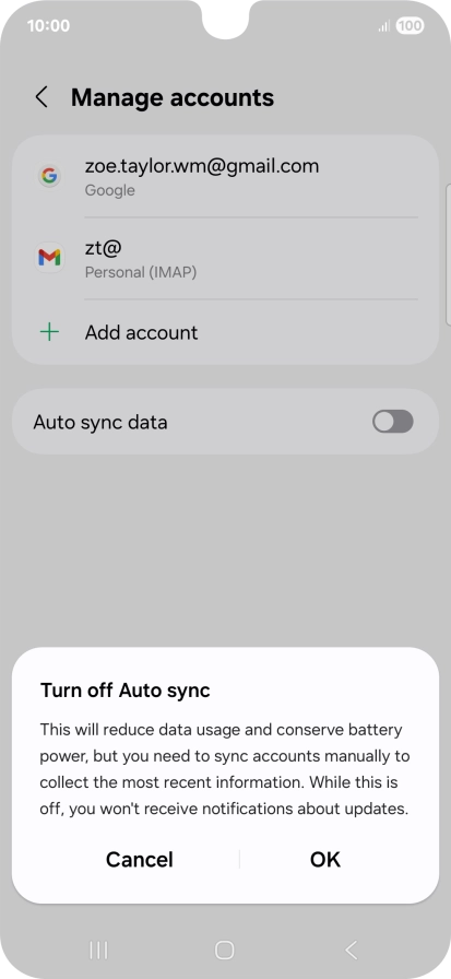 Press the indicator next to "Auto sync data" to turn the function on or off.