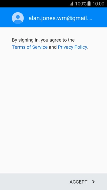 Press ACCEPT and follow the instructions on the screen to select settings for your Google account.
