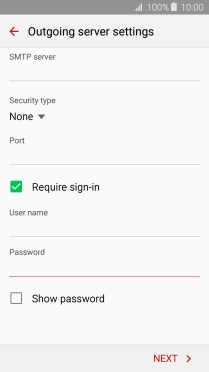 Press the field below "SMTP server" and key in the name of your email provider's outgoing server.