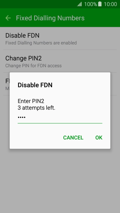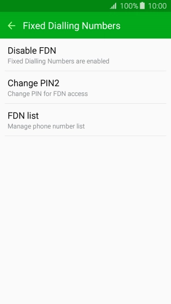 Press Disable FDN to turn off fixed dialling.