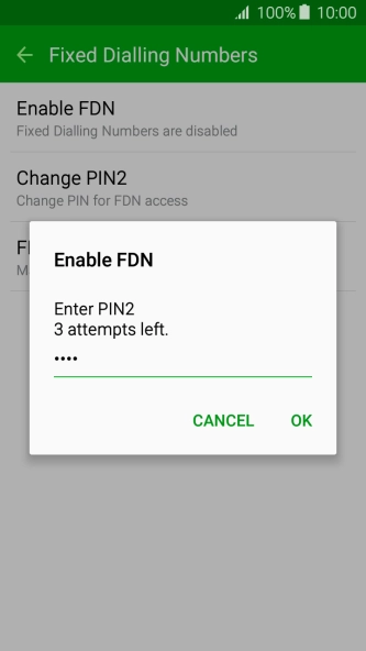 Press Enable FDN to turn on fixed dialling.