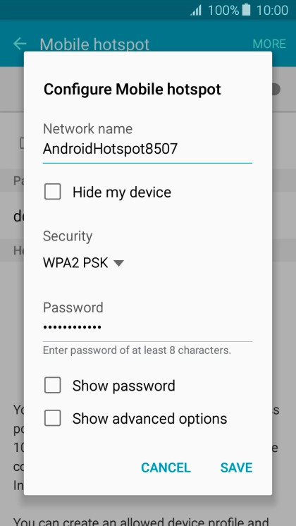 Press WPA2 PSK to password protect your Wi-Fi hotspot.