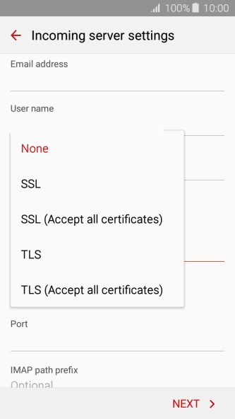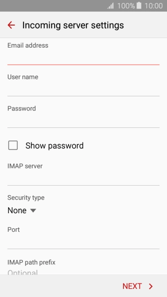 Press the field below "IMAP server" and key in the name of your email provider's incoming server.