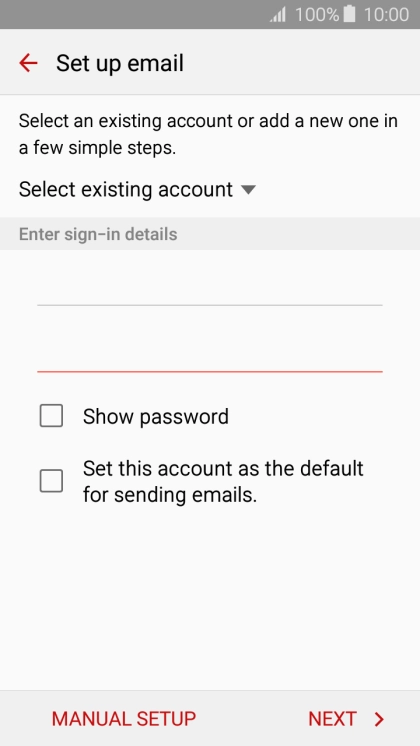If this screen is displayed, you email account has been recognised and set up automatically. Follow the instructions on the screen to key in more information and finish setting up your phone.