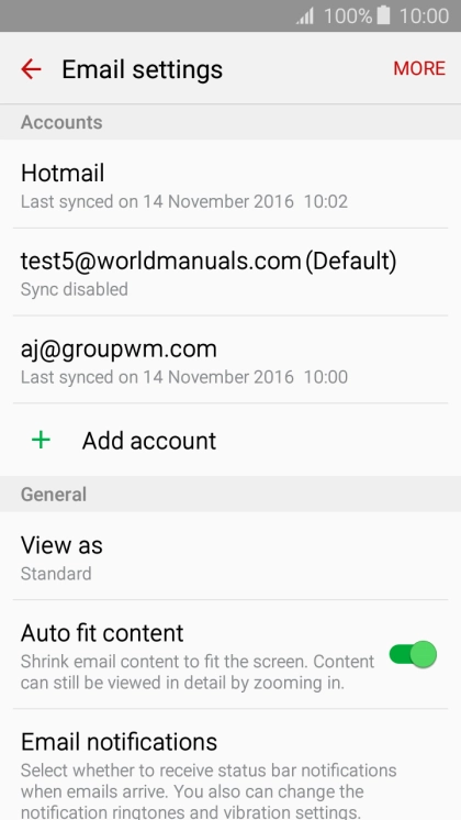Press When deleted from Inbox to delete email messages on the server when you delete them on your phone.