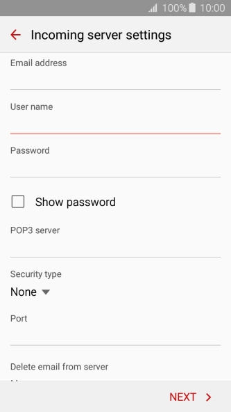 Press the field below "User name" and key in the username for your email account.