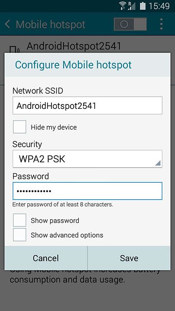 Key in the password you selected in step 2 and establish a connection to the Wi-Fi hotspot.