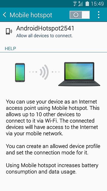 Press the indicator next to "Mobile hotspot" until the function is turned on.