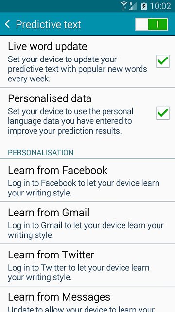 Press the indicator next to "Predictive text" until the function is turned on.