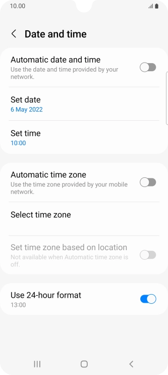 Press the indicator next to "Automatic date and time" to turn on the function.