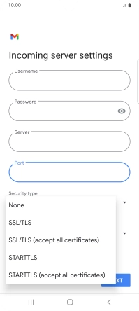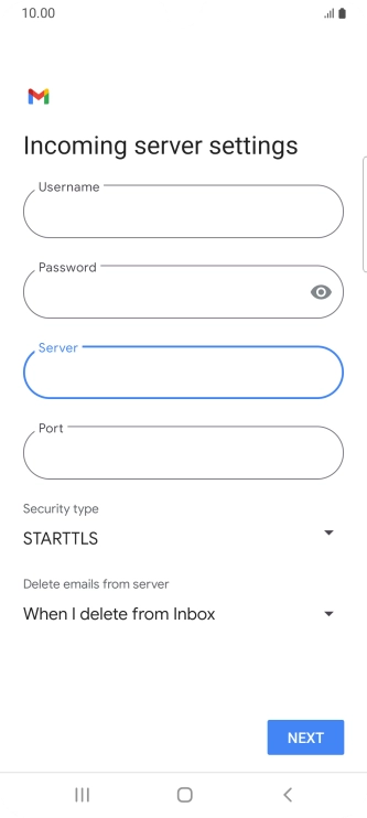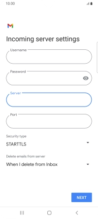 Press the field below "Server" and key in the name of your email provider's incoming server.