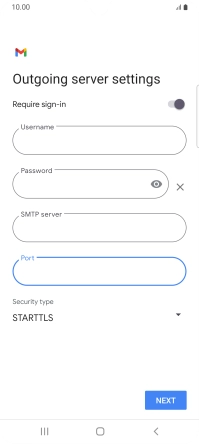 Press the field below "Username" and key in the username for your email the email provider's outgoing server.