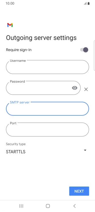 Press the field below "SMTP server" and key in the name of your email provider's outgoing server.