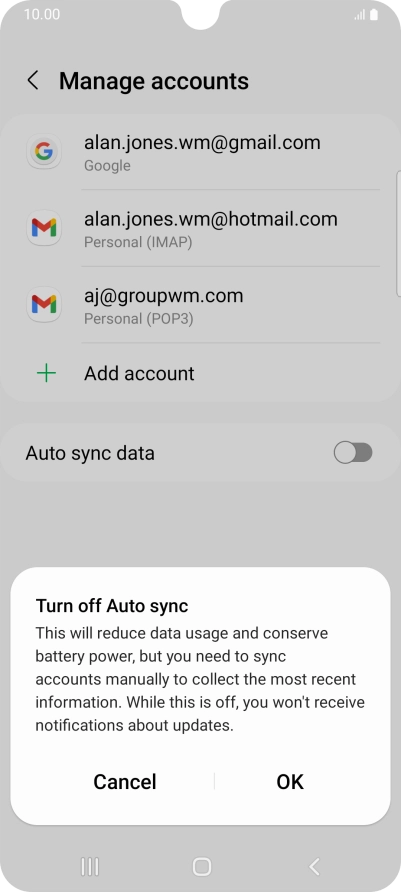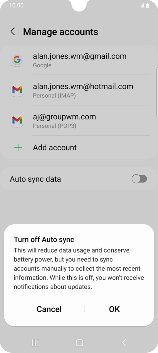 Press the indicator next to "Auto sync data" to turn the function on or off.