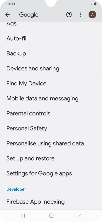 Select settings for Find My Device