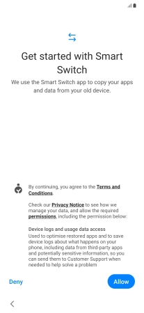 Press the required setting and follow the instructions on the screen to transfer the content from another phone.