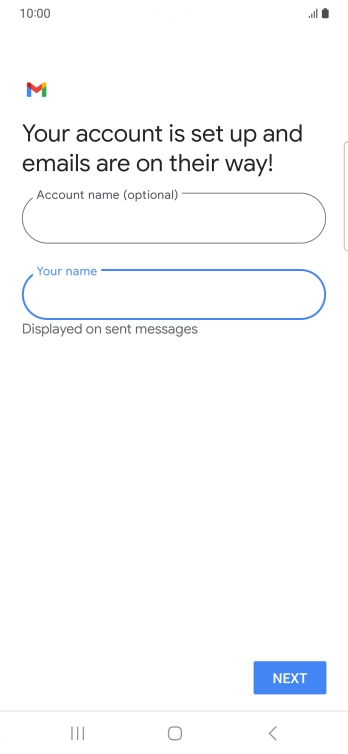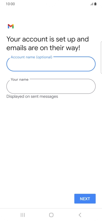 If this screen is displayed, you email account has been recognised and set up automatically. Follow the instructions on the screen to key in more information and finish setting up your phone.