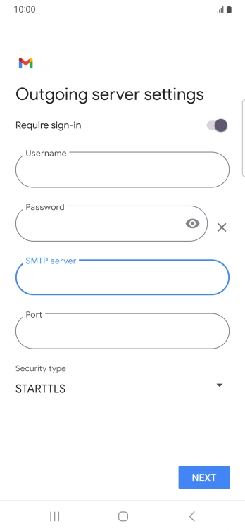 Press the field below "SMTP server" and key in the name of your email provider's outgoing server.