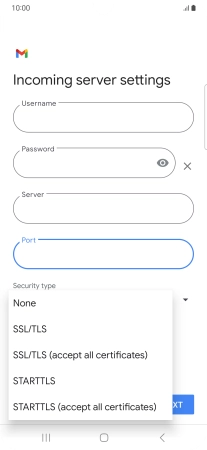 Press the field below "Server" and key in the name of your email provider's incoming server.