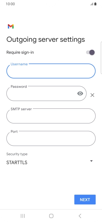 Press the field below "Username" and key in the username for your email the email provider's outgoing server.