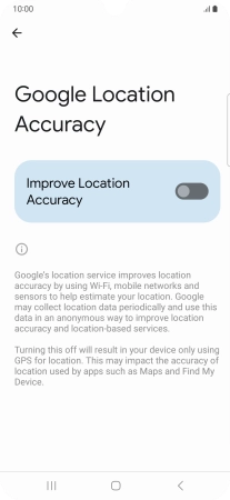 If you press the indicator next to "Improve Location Accuracy" to turn off the function, your phone can find your exact position using the GPS satellites but it may take longer as there is no access to supplementary information from the mobile network or nearby Wi-Fi networks.