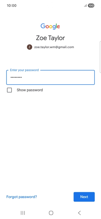 Press the field below "Enter your password" and key in the password for your Google account.