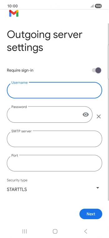 Press the field below "Username" and key in the username for your email the email provider's outgoing server.