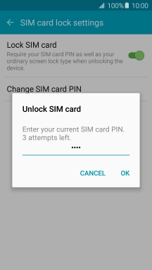 Press the indicator next to "Lock SIM card" to turn the function on or off.