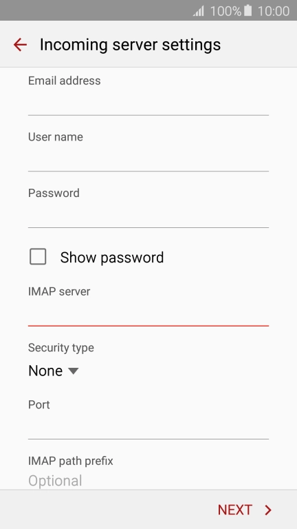 Press the field below "IMAP server" and key in the name of your email provider's incoming server.