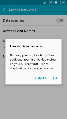 Press the indicator next to "Data roaming" to turn the function on or off.