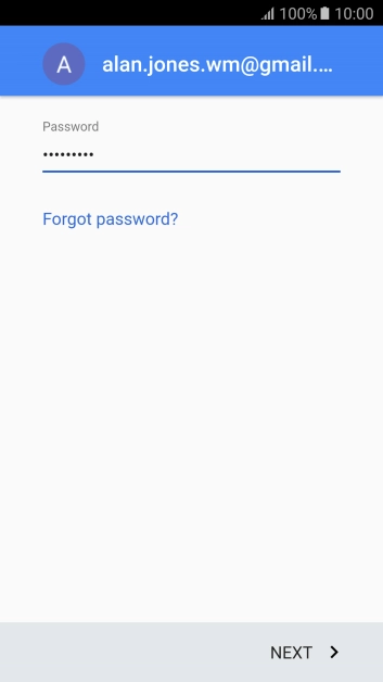 Press the text input field and key in the password for your Google account.