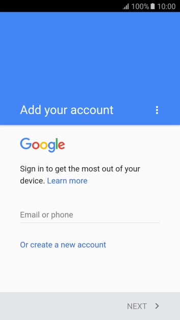 If you don t have a Google account, press Or create a new account and follow the instructions on the screen to create an account.