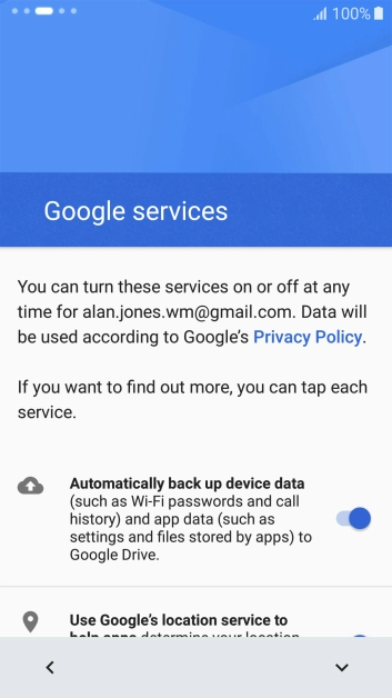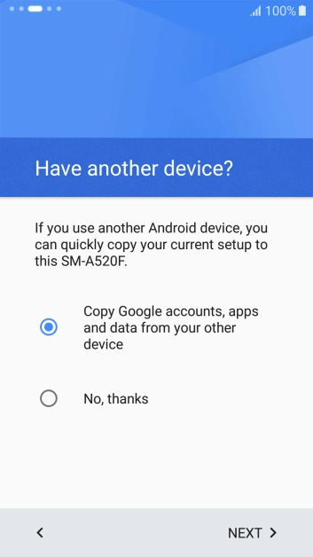 Press Copy Google accounts, apps and data from your other device.