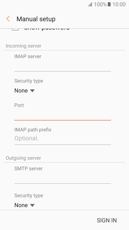 Press the field below "IMAP server" and key in the name of your email provider's incoming server.