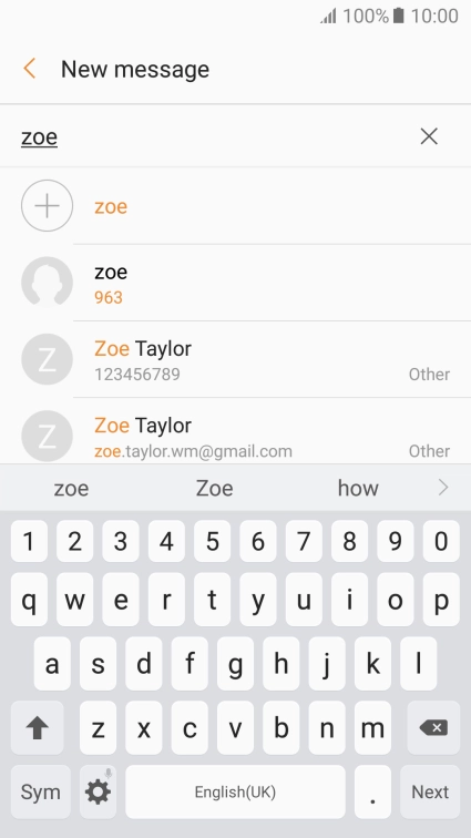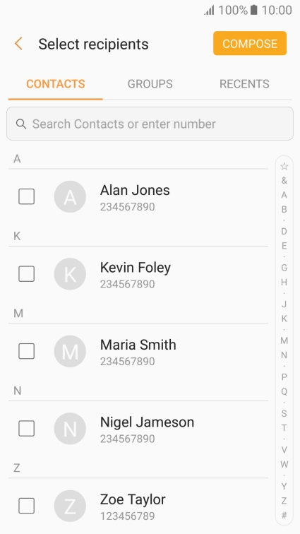 Press the search field and key in the first letters of the recipient's name.