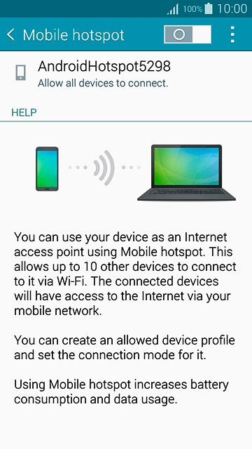 3. Turn on Wi-Fi hotspot