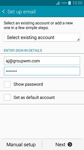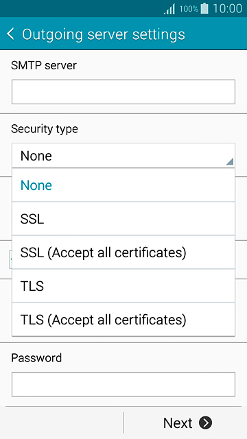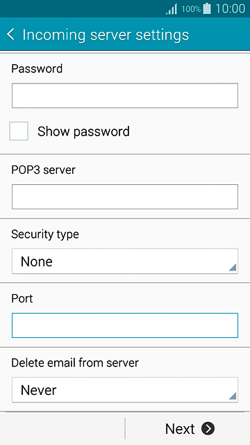 Press Password and key in the password for your email account.