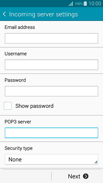 Press the field below "POP3 server" and key in the name of your email provider's incoming server.